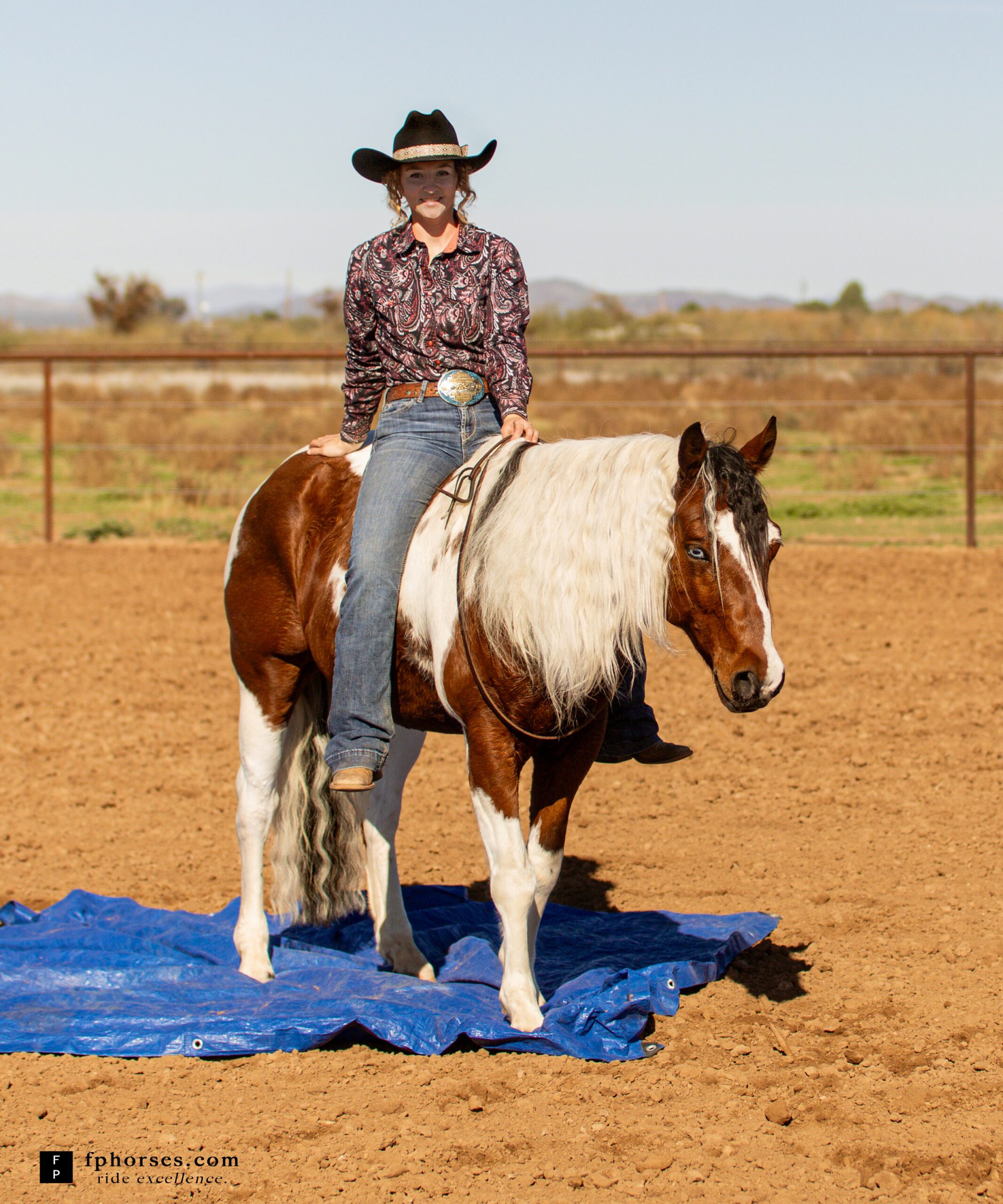 Blue is great around the barn and easy for anyone to handle. He is good to trim, bathe, clip, load, catch, etc, and is used to dogs, ATVs, traffic, heavy machinery, gunfire, tarps, balls, and more. Plus, he has a couple fun tricks up his sleeve - he'll smile and he lays down on command!