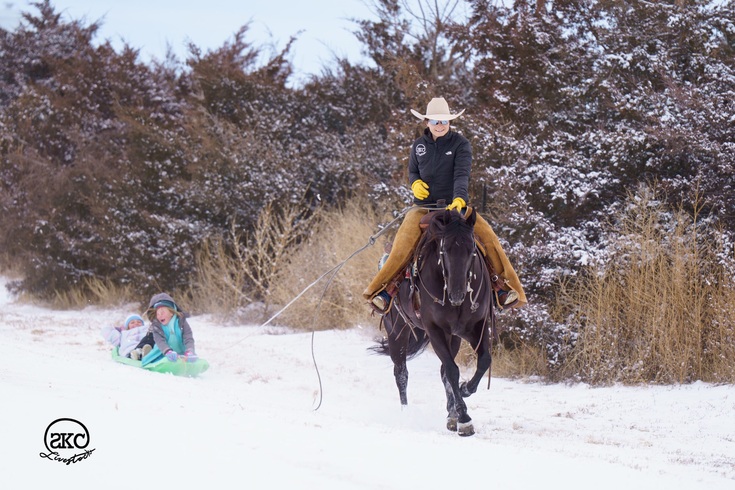 SKC Livestock is a company made up of Cheyenne, Levi and their three kids, Saylor, Kyler and Townes. It's all hands on deck for this crew and their team strives to make and produce a true all around horse that is simple to prepare and easy to ride. Levi and Cheyenne dabble in everything from horse shows to ranching and feed yard work and their horses and kids come along for it every step of the way. They're passionate about their horses finding the right homes and being enjoyed for many years after they are purchased!