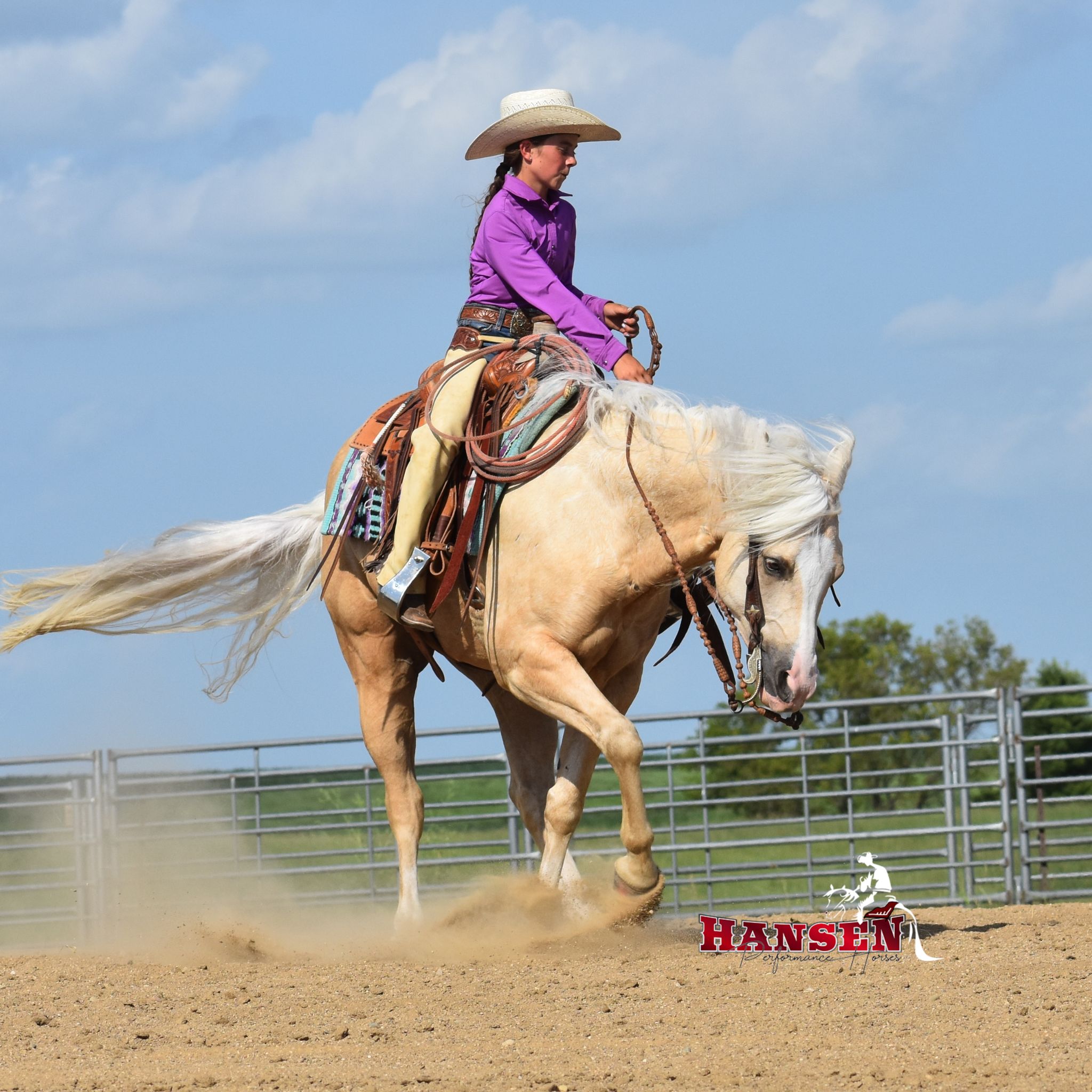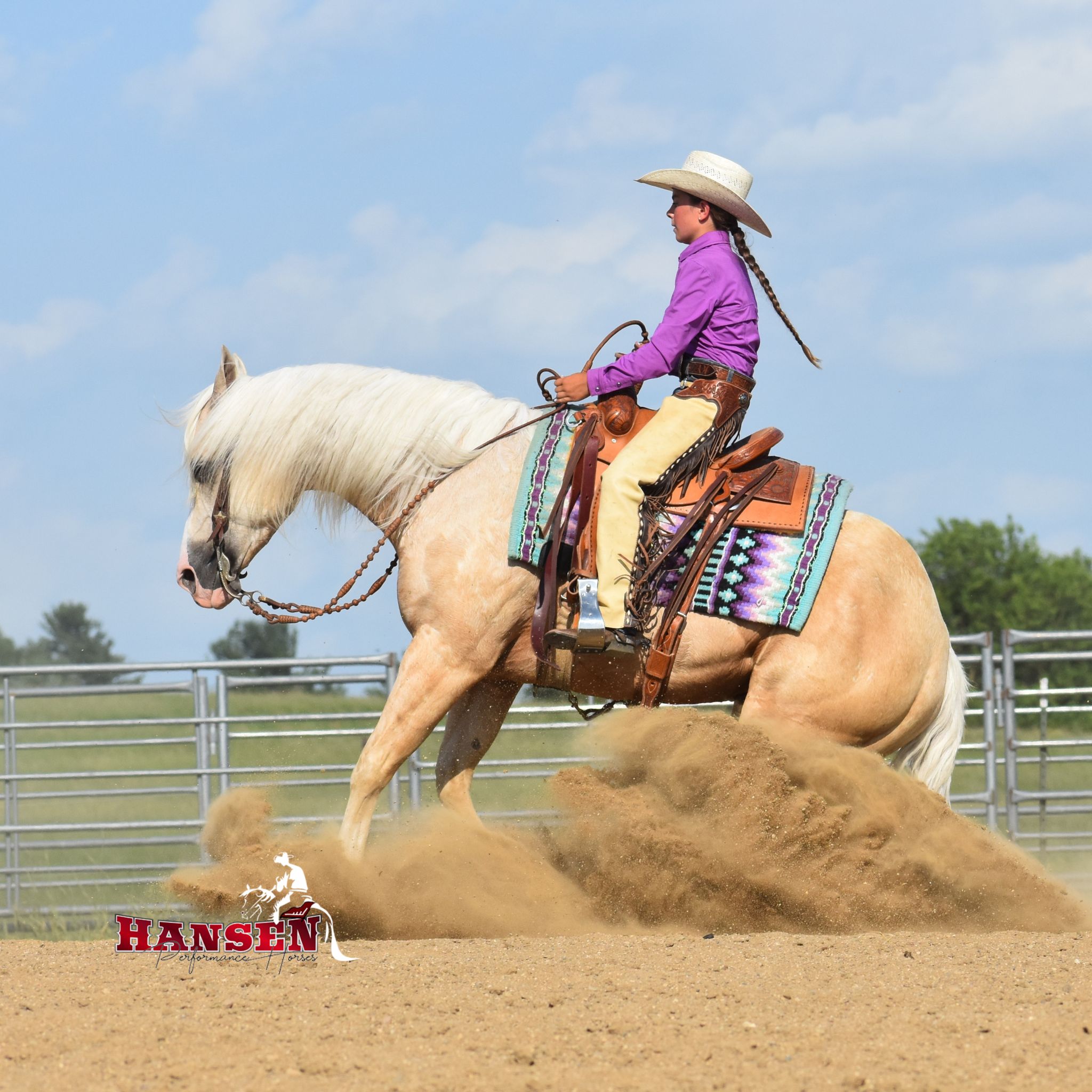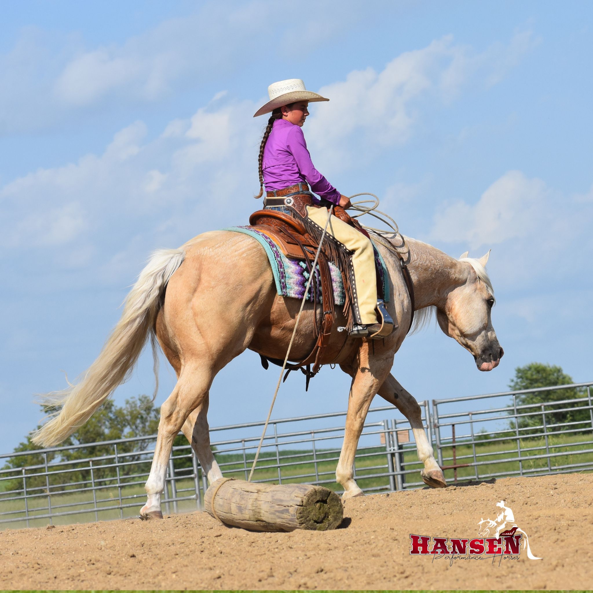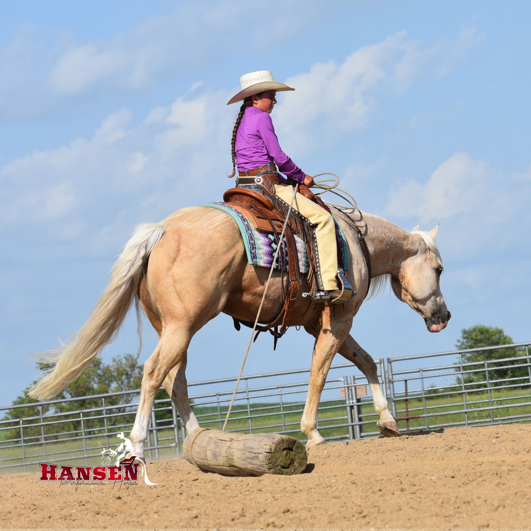 Megan’s love for horses began at just three years old and has shaped her entire life. Megan and her husband, Andy, are excited to see their children, Wyatt (12) and Teagan (10), share the same passion for horses. Together, the family owns and operates Hansen Performance Horses, where they focus on training well-rounded horses. Their horses are exposed to a variety of disciplines, from team roping to trail riding, ranching, and even jumping. It’s also common for them to compete at ranch horse shows, where Teagan proudly won her first buckle!
