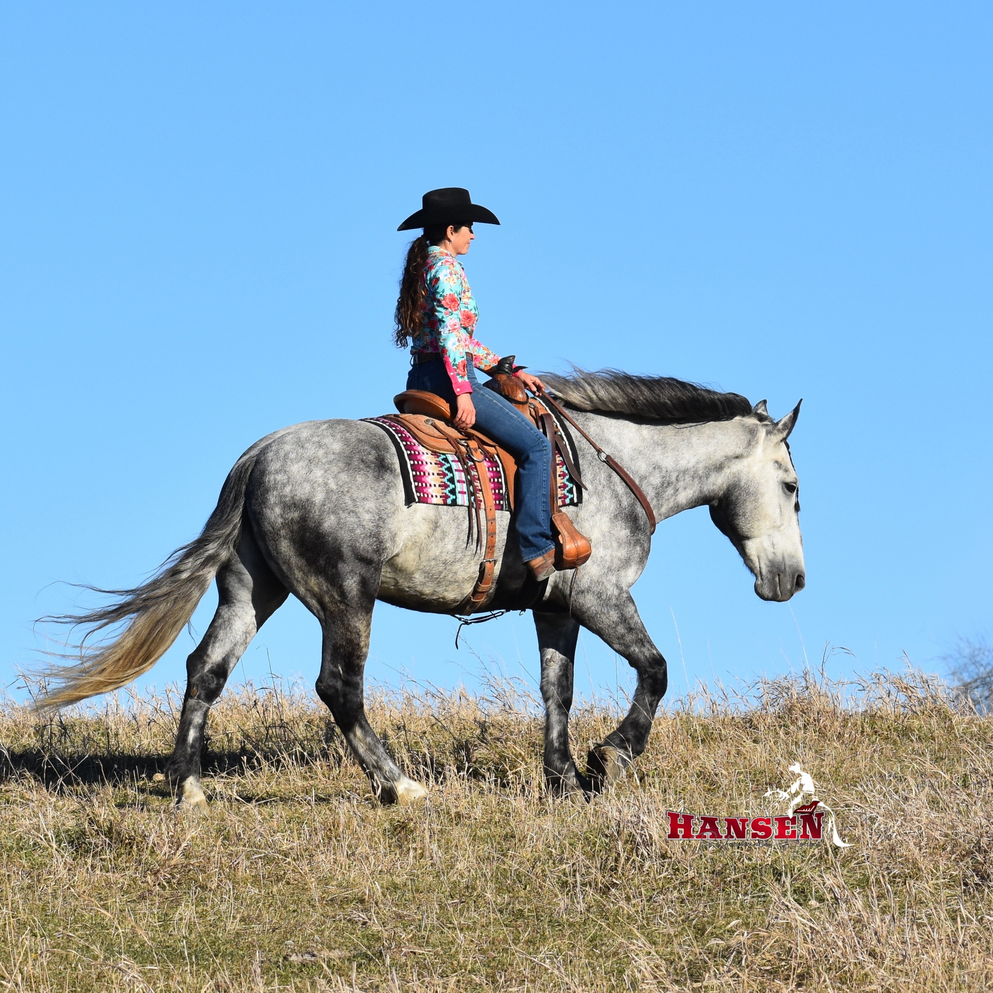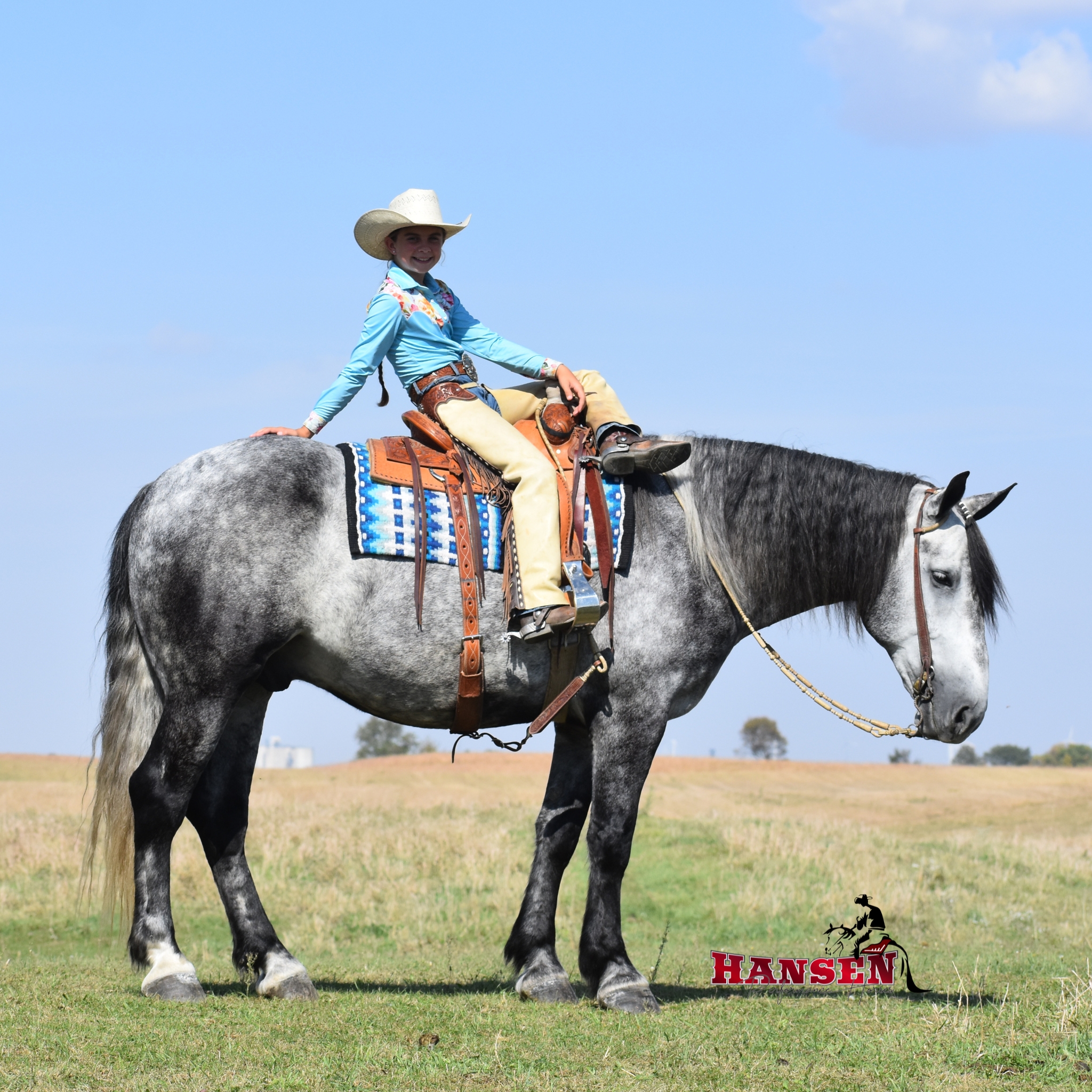 Megan’s love for horses began at just three years old and has shaped her entire life. Megan and her husband, Andy, are excited to see their children, Wyatt (12) and Teagan (10), share the same passion for horses. Together, the family owns and operates Hansen Performance Horses, where they focus on training well-rounded horses. Their horses are exposed to a variety of disciplines, from team roping to trail riding, ranching, and even jumping. It’s also common for them to compete at ranch horse shows, where Teagan proudly won her first buckle!