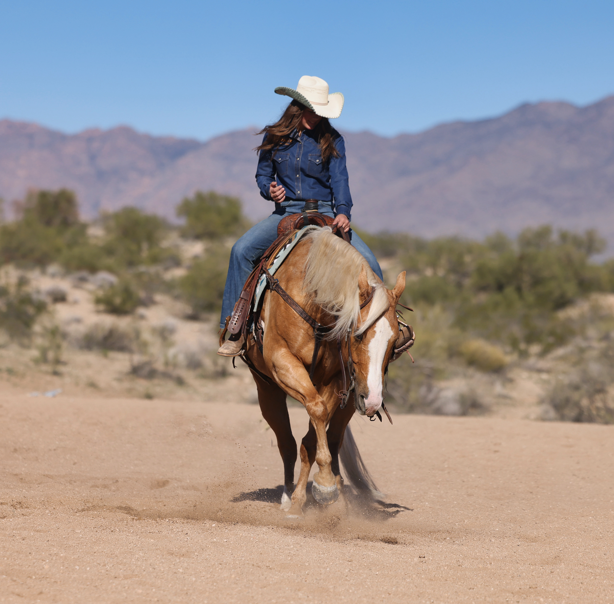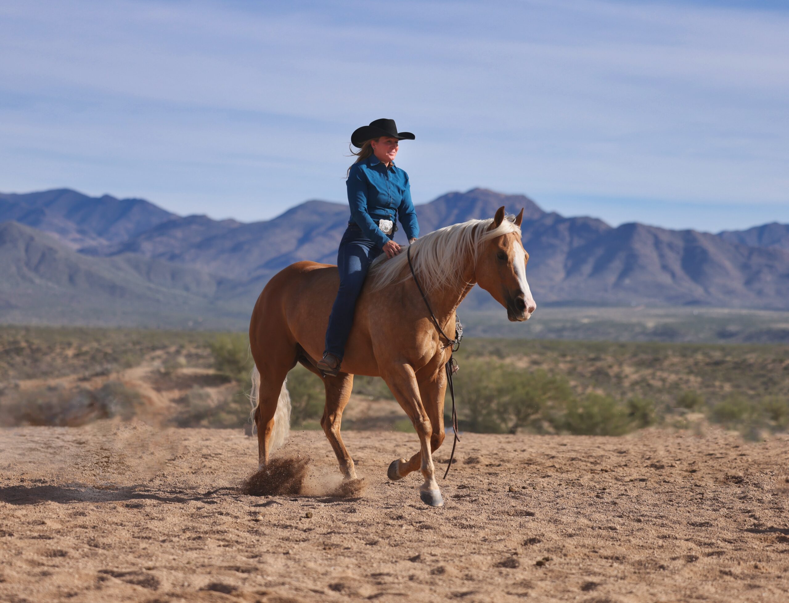 After graduating with a degree in architecture, Paje headed west! It was then that she met her match, her future husband Chad Turner. Already an exceptional horseman, Chad, in a short time, shared his knowledge and encouraged her to compete at higher levels. It was at that time that Turner Performance Horses became a household name among those seeking a well-versed horse for a variety of disciplines. Paje Turner has since won notable awards and is active in the AQHA, APHA, Northern Rodeo, The Run for a Million, World Series of Team Roping Finale, National Snaffle Bit, National Cutting Horse, National Reining Horse, Versatility Ranch Horse, and many more. From the back country of Montana to the sandy trails of Arizona, and ranches in between, Paje understands the importance of a horses experience outside the arena as well.