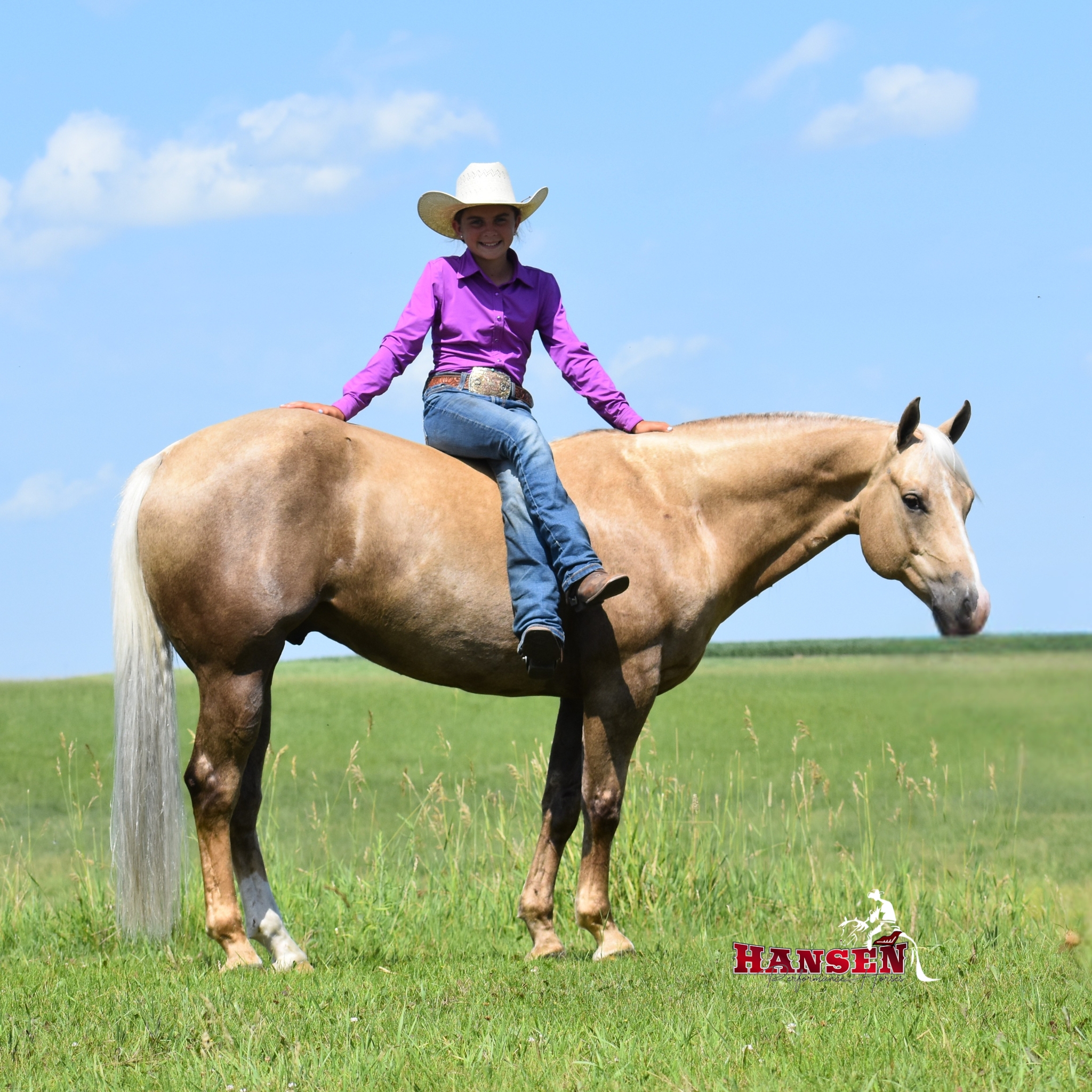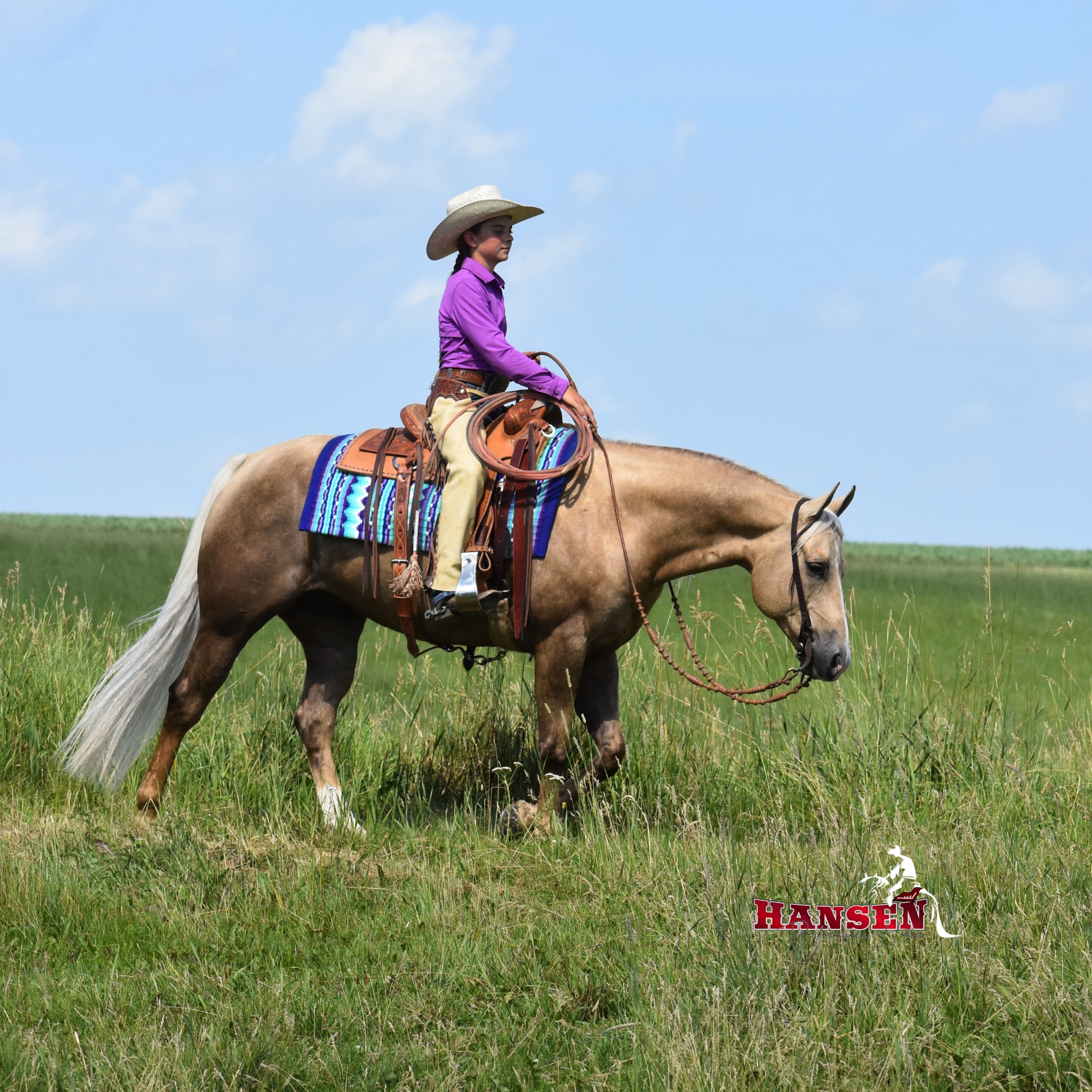 Megan’s love for horses began at just three years old and has shaped her entire life. Megan and her husband, Andy, are excited to see their children, Wyatt (12) and Teagan (10), share the same passion for horses. Together, the family owns and operates Hansen Performance Horses, where they focus on training well-rounded horses. Their horses are exposed to a variety of disciplines, from team roping to trail riding, ranching, and even jumping. It’s also common for them to compete at ranch horse shows, where Teagan proudly won her first buckle!
